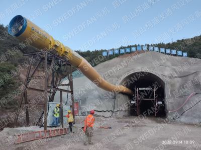 2025年的9月21日SWEDFAN 2xAVH-R140.132.4.8风机1台。在新疆维吾尔自治区阿克苏地区昭温公路二标西天山隧道项目,完成安装调试,投入运行。为洞内超前施工开挖提供通风保障。