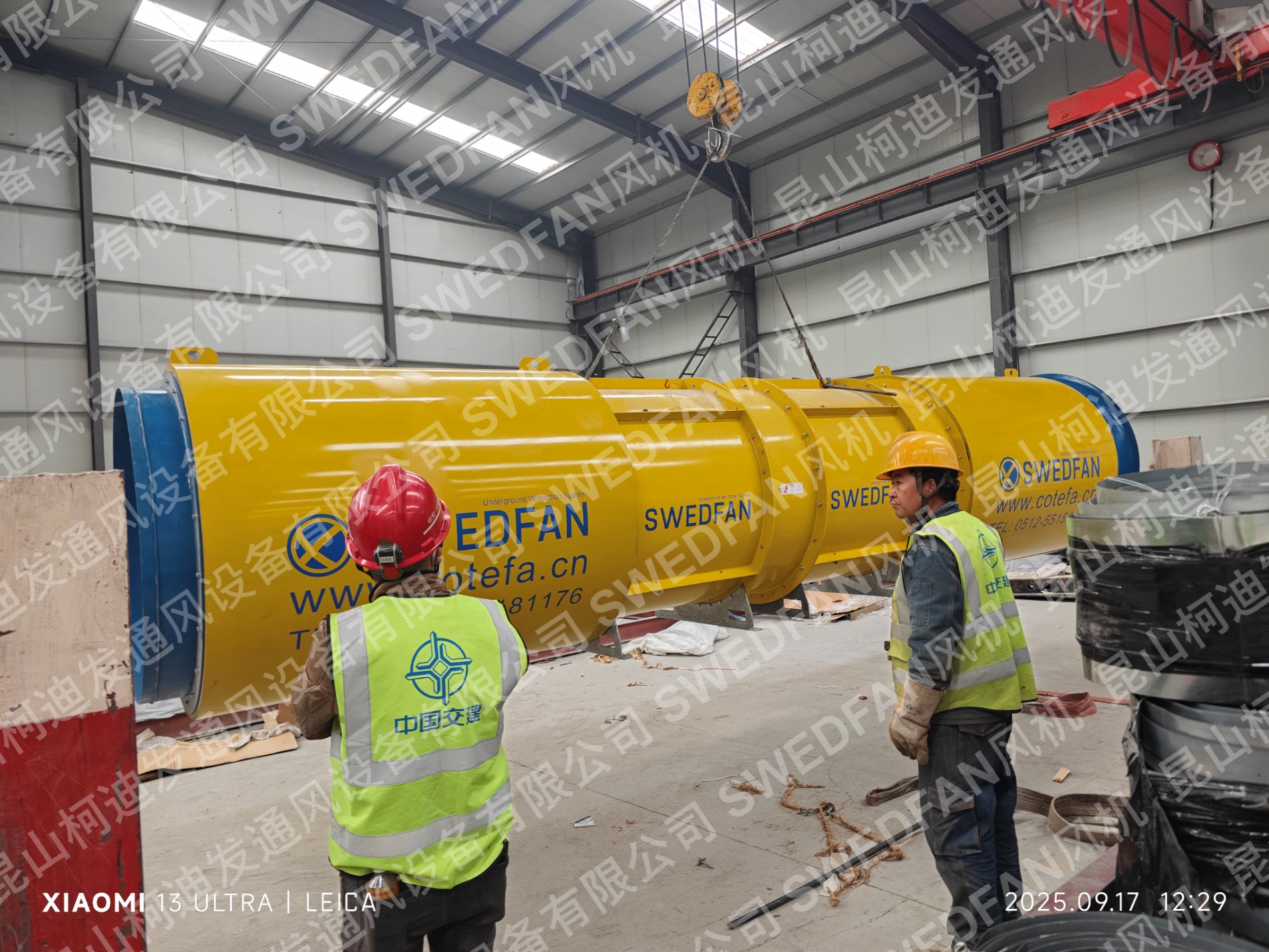 2025年的9月21日SWEDFAN 2xAVH-R140.132.4.8风机1台。在新疆维吾尔自治区阿克苏地区昭温公路二标西天山隧道项目,完成安装调试,投入运行。为洞内超前施工开挖提供通风保障。