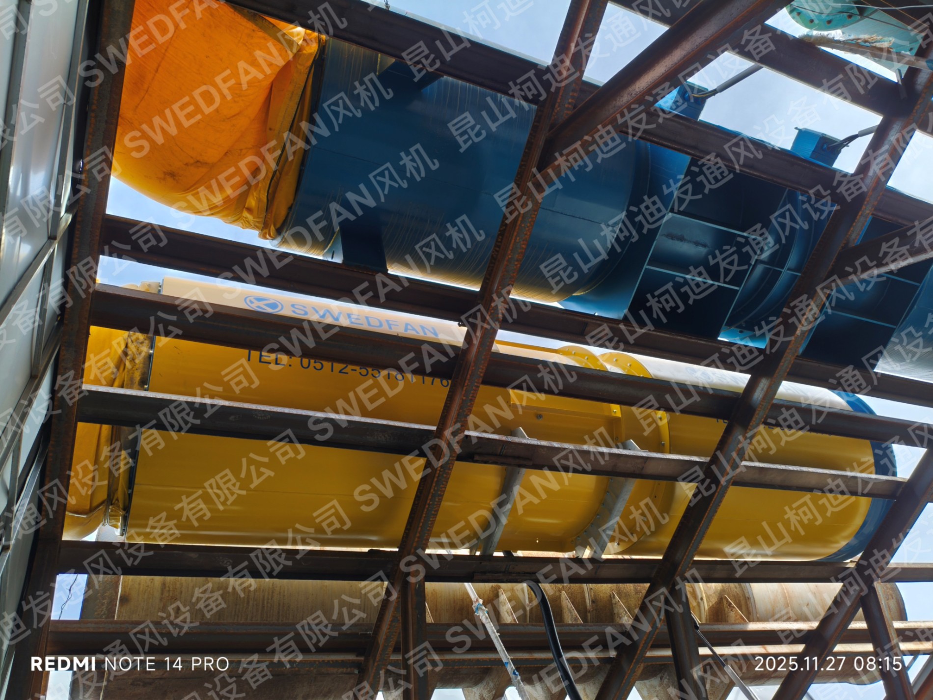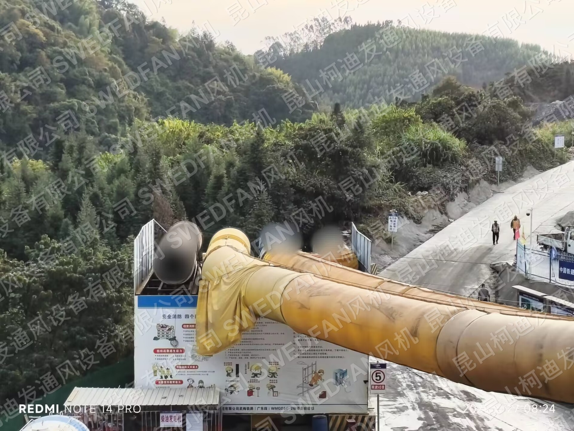 中铁十八局武梅铁路高岭隧道项目,启动调试完成。通过斜井670m向大里程2800m+小里程2800m一站式送风。1x160kw风机目前半速运行,实时能耗仅为25kwh.